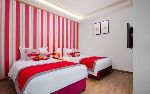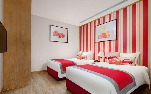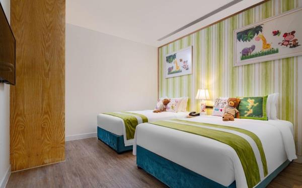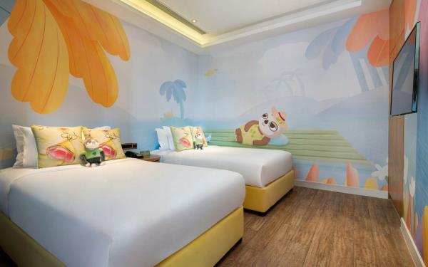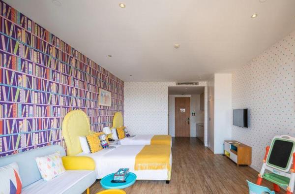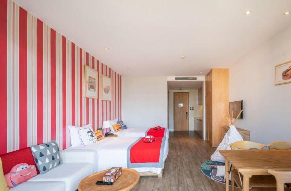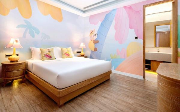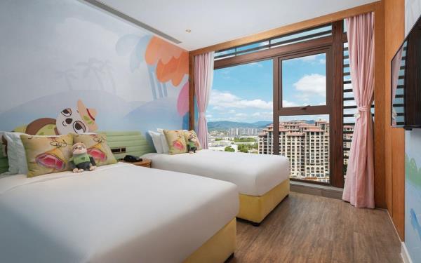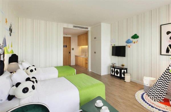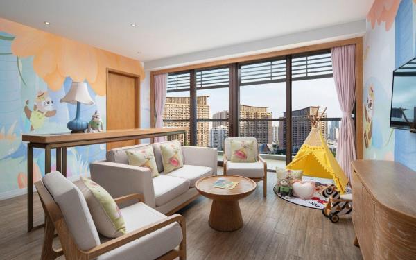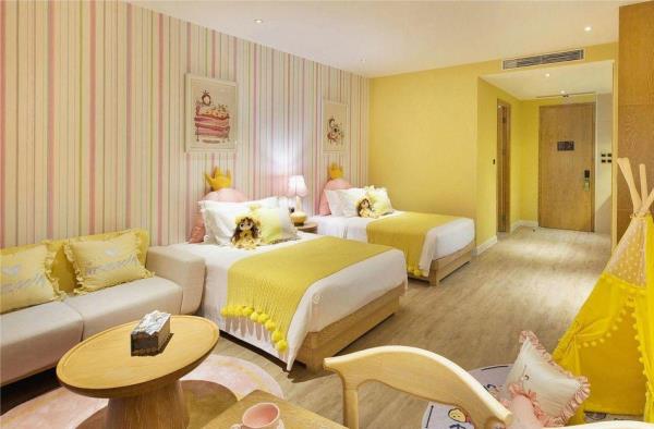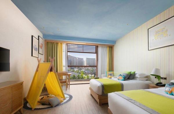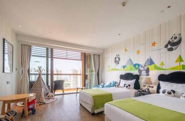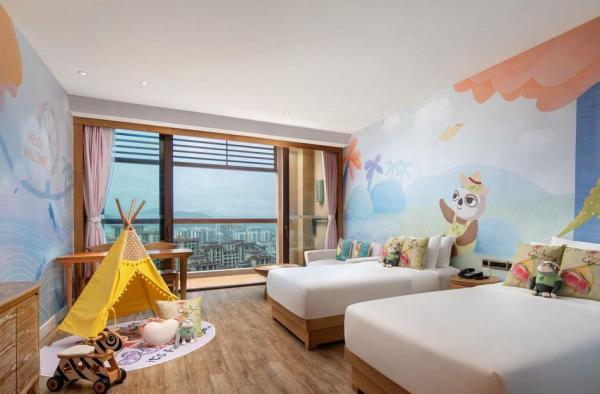 三亚湾红树林度假世界位于三亚市中心城区,距离三亚凤凰国际机场约15分钟车程,距离三亚动车站约5分钟车程。三亚湾红树林度假世界将时尚、艺术、休闲、娱乐、购物等元素融入星级度假综合体,引领全新的度假生活方式。度假世界毗邻享有“椰梦长廊”美誉的三亚湾,拥有6座定位鲜明的度假酒店(木棉酒店A/B、菩提酒店、皇后棕酒店、大王棕酒店、棕榈王国亲子主题酒店、椰林酒店),3718间/套客房,几十家主题餐厅,其中红树林招牌泰餐厅,红树林烤鸭是来三亚必打卡的点评推荐宝藏餐厅,3.3万平方米亚马逊丛林水乐园,4800平方米的今日X书屋定期组织红树林AI艺术课程手把手教您玩转AI制图,5000平方米儿童探险王国,三亚湾红树林宝岛美食街-觅街,1+X红树林影城,今日艺术汇,电影工坊,陶艺吧,红树林奥特莱斯,以及多家全球快时尚品牌及网红品牌入驻的15万平方米的红树林商街。三亚湾红树林层次丰富的度假生活氛围,满足不同年龄层的吃住游购娱需求。其中,棕榈王国是三亚湾红树林度假世界里的亲子主题酒店,亚马逊丛林水乐园,探险王国均近在咫尺。酒店拥有各类豪华客房,分为双床标准间、双卧室套房和三卧室套房,面积56㎡ -106㎡。客房分为棕榈仙子、魔法小画家、熊猫侠、赛车手、小公主、阿懒等6大主题房型。房间里的家具、布艺、寝具、墙绘、装饰品以及系列儿童用品等,均按照6大主题风格设计定制。所有房间采用国际认证的环保材料精心打造,让孩子们置身于安全舒适的童话奇幻世界。客房内均设置了亲子客厅和游戏区域,为小朋友们提供更多的娱乐空间,让全家享受亲子度假的天伦之乐!