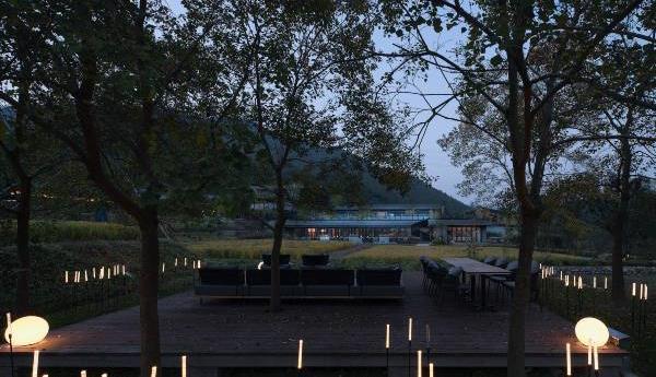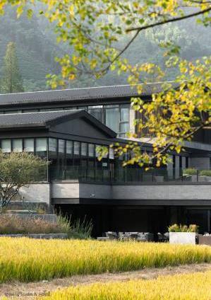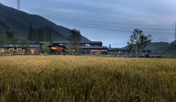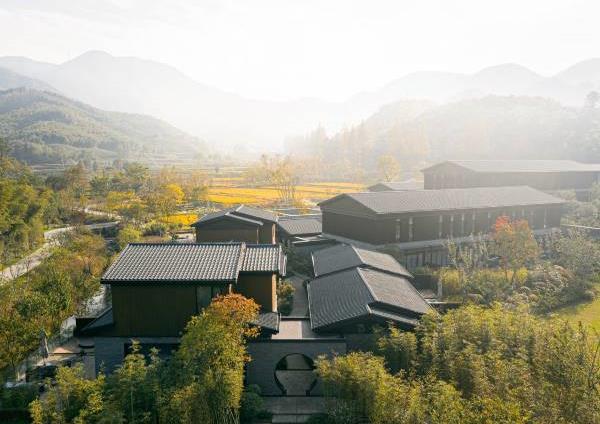 在自然万象中探究现代度假哲学,将奢华定义为回归自然之美。姚良村口,古枫树下,稻花香中,酒店所有建筑均置身于稻田与山谷之间,令居者为稻田所环抱,远山、竹海、松林、梅溪、稻田,四季之间,俯仰皆景,构成一派纯粹的田园风光。