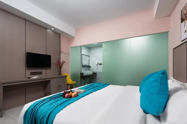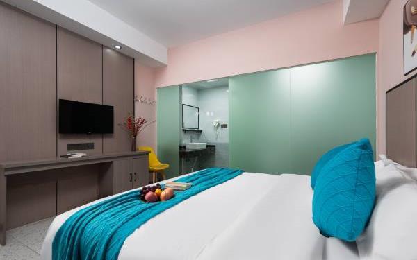 卫浴设施:私人卫生间、拖鞋、24小时热水、私人浴室、吹风机。仅部分房间具备:、毛巾