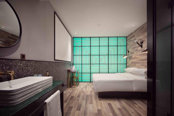 酒店附近多个景区,乘坐地铁4号线至越溪站5号口出站步行6、7分钟左右便可到达酒店。酒店地处吴中经济开发区,位于S.M广场旁,毗邻繁华的商业区,闹中取静,环境宜人,交通便利。靠近石湖风景区,驾车10分钟左右即可到达旺山生态园、上方山动物园,距离太湖生态风景区、西山风景区及苏州乐园30分钟左右车程。酒店经过设计师精心改造和设计,以其呈现出的怀旧工业感及当下流行的设计风格,吸引了不同年龄段的高品质客户。酒店拥有一系列独特设计风格的客房,房内柔软的织物和简约的家具缓和了苛刻的工业感,营造出舒适的居住空间,让每一位客人都有宾至如归的感觉。每间客房都是以不同的风格装饰,讲述着不同的故事。就像酒店说的那样:编制自己的故事,为每次入住提供全新的体验。正如品牌名一样,在矛盾中剥离出平衡,在冲突中迸发出灵感。就像我们的生活,用看似妥协去做每一次的突破;这里做的是懂你的酒店:1080P高清投影装置、KOHLER卫浴、独立弹簧零压乳胶床垫和零压乳胶枕已为您配备到每间客房,床品和毛巾更是采购自Ritz-Carlton产品供应商,每间客房独立50M无线网络。您能看到和看不到的都是我们的真诚与贴心。设计师采用大量莫兰迪低饱和色系打造出整个酒店公共区域的色彩空间感,这种自带气场的高级色系让住客视觉达到充分平衡。平和自持、舒缓雅致有时略带冷静的感觉,却让人越看越喜欢。是您商务交流、观光旅游下榻的不错之选。