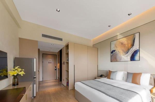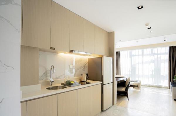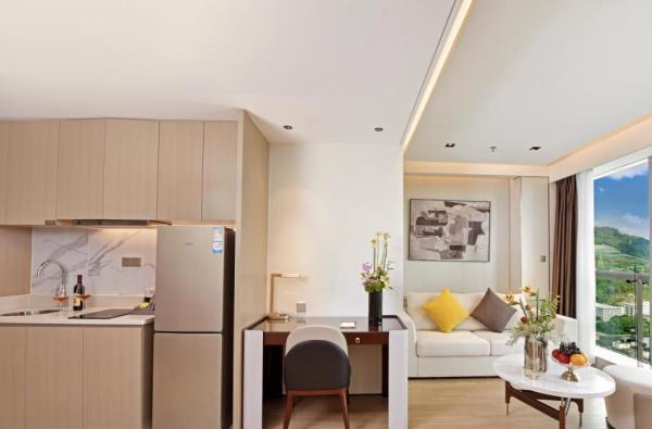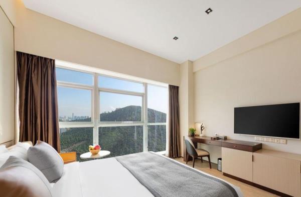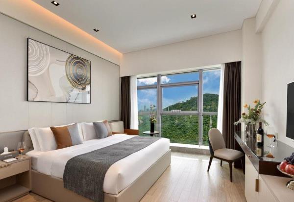 璟峯酒店是酒店日租和月租、长租相结合的公寓式酒店,位于留仙大道与丽山路交汇处,临近地铁5号线大学城站,酒店北接深圳野生动物园、清华大学、北京大学、哈尔滨工业大学。东邻南山智园、塘朗城、宝能城、深大总医院、南方科技大学,西邻创智云城、万科云城、深圳职业技术学院、中兴通讯。酒店距离深圳北站约15分钟车程;距离福田深圳会展中心约25分钟车程;距离深圳宝安国际机场约30分钟车程;距离宝安国际会展中心约40分钟车程。酒店客房分布在15楼至32楼,每间客房都有全景玻璃窗可欣赏塘朗山和动人夜景,视野开阔、采光极佳。每间客房都配备了洗烘一体洗衣机和洗衣液,雅兰床垫、Toto卫浴、55寸LED电视、大容量冰箱、电磁炉、抽油烟机等。入住酒店,37楼可享健身房锻炼,云顶餐厅用早餐。酒店周边业态丰富,楼下有众冠时代广场、益田假日里购物中心,吃喝玩乐购物便捷;酒店周边景点深圳野生动物园、欢乐谷、世界之窗、锦绣中华民俗村、深圳湾公园均可快捷到达。酒店是深圳市众冠股份有限公司旗下的高端酒店品牌。地处南山西丽核心商业区,酒店以“舒适家”为服务理念,以“五心”体系为服务标准,为都市商务精英人群,打造高品质、舒适的租住生活,构建都市精英专享的一站式多元化生活社区。酒店期待您的光临!