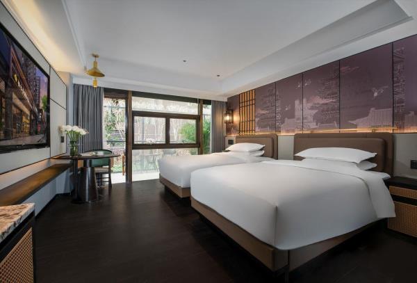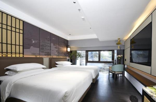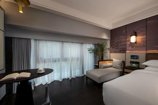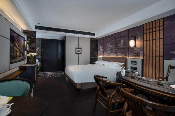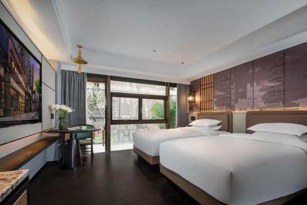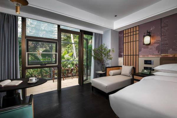 酒店坐落于深圳市核心地带,酒店集古典之雅韵与现代之便利于一体,以其新中式风格的装修和独特的庭院房设计,为每一位宾客提供一处静谧舒适的休憩之所。酒店拥有多间精心打造的客房,其中酒店的特色行政庭院大床房。每一间庭院房面积均达到50至60平米,空间宽敞而明亮,装修风格既传统又现代,充满了浓郁的国风风韵。房间内布局考究,色调柔和,为宾客营造出一种宾至如归的温馨氛围。而庭院房的亮点,莫过于那超大的花园阳台。站在这里,宾客们可以一览酒店绿意盎然的庭院美景,感受自然与人文的和谐交融。无论是清晨的一缕阳光,还是傍晚的落日余晖,都能在这里留下美好的记忆。酒店周边交通便捷,紧邻深圳湾口岸,步行仅需10分钟即可到达。深圳湾人才公园亦在咫尺之遥,仅需8分钟便可漫步其中,感受深圳的创新与活力。此外,酒店距离春茧和深圳湾体育馆均不远,为宾客们的休闲娱乐提供了极大的便利。值得一提的是,深圳湾中心河公园与酒店紧密相连,宾客们可以随时随地享受散步的乐趣,感受河水的宁静与城市的繁华。而太古城购物中心距离酒店很近,购物、餐饮、娱乐一应俱全,满足宾客们的多样化需求。更为便利的是,酒店邻近地铁2号线海月站B出口,宾客们可以轻松乘坐地铁,畅游深圳的每一个角落。酒店以其独特的庭院房设计、新中式风格的装修和优越的地理位置,为每一位宾客提供一处高品质的休憩之所。无论是商务出差还是休闲度假,这里都将是您理想的下榻之地。我们期待您的光临,一同感受这份来自深圳的温馨与美好。