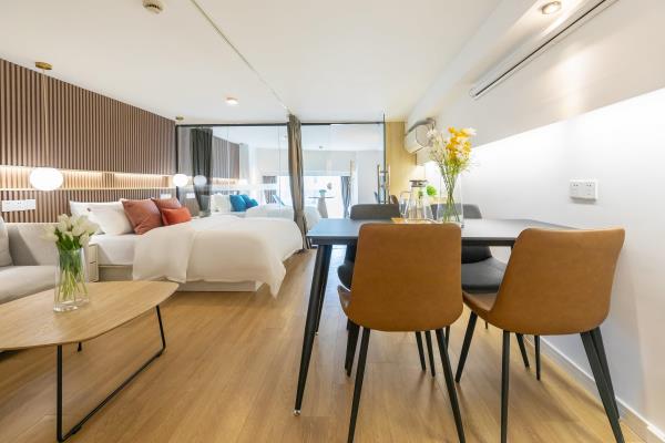 便利设施:WIFI、空调、茶艺工具、沙发、座椅、洗衣机、熨斗/烫衣板、220V电压插座、多种规格电源插座、衣柜/衣橱、餐桌