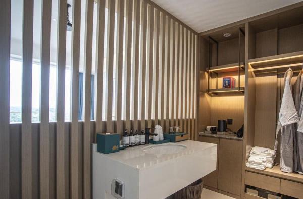 庐山西海景泰酒店坐落在国家5A级风景名胜区——庐山西海湖畔,这里拥有一级空气和一级水质,毗邻中国最美水上高速公路—永武高速。度假区总占地面积598亩,三面环湖,游客可以不下高速就能领略庐山西海的绝美风景,实现吃、住、娱、乐、购深度体验!