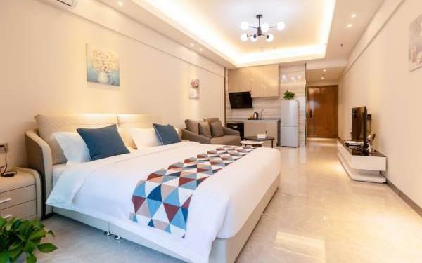 公寓位于坦洲镇环洲北路敏捷锦绣国际花城花月苑,附近饮食、娱乐、购物配套设施完善。优雅的居停环境,迷人的湖畔景色,房间内配有120寸超大屏幕投影,洗衣机、空调、冰箱、衣柜、厨房等,所有房间精心选用优质的酒店标准用品。 特色 1.十大品牌床垫之首:梦百合记忆棉床垫 ; 2.魅力洗护:THE BODY SHOP香水洗浴用品(天猫旗舰店采购); 3.亲肤体验(浴巾、床品均采用酒店通配置)周到呵护您的健康。 个性化需求、更私密的氛围、高性价比服务的要求,为您的旅途带来居家的体验。
