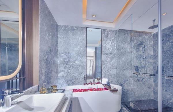 南浔蝶来大酒店位于南浔CBD,与南浔区政府、行政服务中心等相邻,交通便利,风景优美,距离南浔古镇不足2公里,酒店地理位置优越、交通便捷。酒店拥有两百余间(套)装饰时尚、类型多样的客房,酒店设有浔味全日制西餐厅、太湖春酒楼中餐厅、西轩大堂吧及会议室。同步配备游泳池、健身房、KTV、酒吧、SPA足浴、棋牌等配套设施,能为您提供全方位的康体娱乐服务。酒店拥有7000多平米的会议餐饮配套,其中拥有1300平,层高8米的无柱多功能豪华宴会厅,该宴会厅可同时容纳约1500人举行各式大型宴会及会议,此厅亦可以分割成3个独立的厅使用,是南浔当地举办重要宴会、会议及庆典活动的不二之选,另外还配备了面积各异的6间多功能会议室,为您提供更多的选择;可为您量身定制各种宴会、会议和婚宴等。