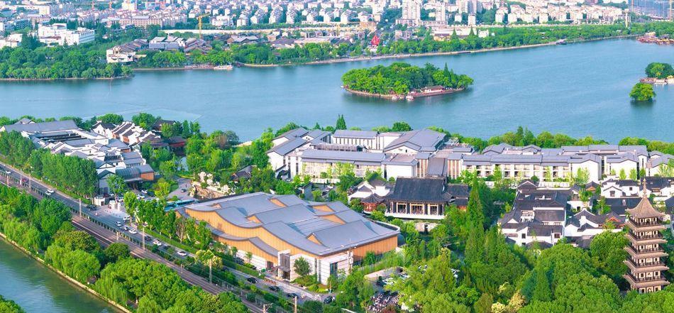 酒店位于嘉兴南湖红船岸边,紧邻嘉兴火车站,交通便利。是商务出行、休闲度假优选。步行或市内交通直达:南湖天地、嘉兴子城、嘉兴天主教堂、越秀集市、梅湾街、范蠡湖公园、南湖烟雨楼、南湖革命纪念馆、月河街区、芦席汇、嘉兴美术馆、马家浜遗址博物馆。酒店周边知名的旅游景区(点)有:乌镇景区、西塘景区、濮院时尚古镇、盐官潮乐之城等。 酒店整体以大气的中式建筑风格为主,融入传统江南园林的细腻,“引湖入店、借塔成景”将南湖、建筑、园林融为一体,叠石理水,移步换景。人文精神浸润空间内外,以崭新视角重塑江南园林建筑美学经典,为具有鉴赏力及文化阅历的精英人士打造理想旅居体验。