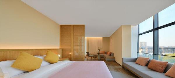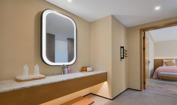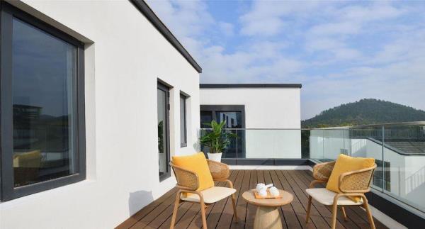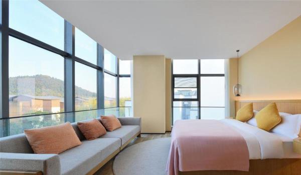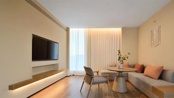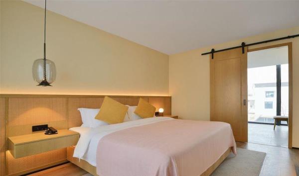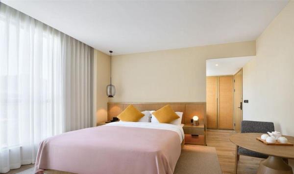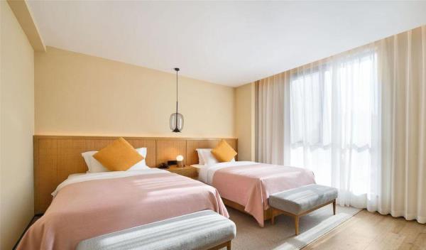 「前世」2500年前的树山便已成被群山环绕的小村落,深厚积淀的历史长河流淌不息,自云泉古寺等人文遗迹、至自然优美的天然景观皆深深地烙在旅人的记忆里,山雾炊烟中透出氤氲诗韵。白居易诗云:天平山上白云泉,云自无心水自閒,“云泉”二字,对树山来说,从古代就有着重要的意义。据说云泉茶便是由「云泉」和「望湖」两脉泉水浇灌,自东晋时就久负盛名,距今已有一千多年的历史,为人称道的是制作好的云泉茶色泽嫩绿,芽肥匀整,醇爽清香。而至宋朝年间,循径以入,茂林幽间,珍护禅师入大石山掌建了云泉庵,便为云泉寺前身,松竹森郁于下, 太湖远峰,可收一望。来到树山,林木鸟鸣合着云泉寺的诵经声,烦思尘念便随风飘散在百亩竹海之间。「今生」谁谓今日非昔日,端知城市有山林。 三面环山的树山,一花一世界,一叶一菩提,入眼的何止树与山,被森林包围著的树山村就像一杯清洌的云泉茶汤,不仅拥有春天的梨花、夏天的杨梅之恬淡香气,秋冬的温泉镇上炊烟袅袅,亦如茶上飘散的雾气氤氲。拥有2500年人文历史痕迹的小村庄已摇身一变成人文胜景、生态乡村、休闲度假、健康养生于一体的乐活聚落,既有苏州的园林雅致,又有田园质朴,村与山林相依相傍,人与自然和谐共处。「概况」没有车水马龙的喧嚣,没有阡陌红尘的纷扰,时间仿佛就这样一直静止在花开千树的温柔云泉里。坐落于苏州树山村,太湖旁的田园之地的树山花间堂•云泉在大自然灵感启迪下,尽心守候著每一位下榻的宾客,不仅拥有40间舒适便利的精致客房,更为天性好动的儿童设有专属的逍遥乐园,为身心疲惫的旅人备有唤醒活力的瑜伽、健身、温泉汤池等贴心设施,而为团聚时刻准备的精美膳食,让需要被温暖的胃口,品尝到的不只是取自自然的当地食材,更有一份缓下来的闲逸。在在皆是为了让来到树山花间堂•云泉的每一位宾客能在山林的鸟语花香中,在竹林溪水中洗涤心灵, 清享温泉之灵动,观自然之美景,尝树山之珍味,触四季之丰硕。「设计描述」树山花间堂•云泉独特的自然景观与人文艺术气質,拥有著平衡自在的哲学品味,每一处角落,皆可感知到自然不自觉地流进空间设计中,一呼一吸间享受悠然的、轻盈的遗世静好。整体设计灵感取自白居易之「红线毯」:彩丝茸茸香拂拂,线软花虚不胜物,美人蹋上歌舞来,罗袜绣鞋随步没。在这里,透过大量采用自然材料去擘划出旅人渴望的自然况味,更是基于舒适性的考量,在整体空间以现代俐落融合质朴自然为主题基础,更能平衡地调配出惬意却不失精致的旅行步調,入眼可及的装饰更犹如云霞般,色调缤纷却也和谐,让下榻的賓客在自然质朴的设计中,宁静安逸地享受如林木云雾般飘来的阵阵自然芳香,更让人有一种在山谷中找到了避世的禅意之感。