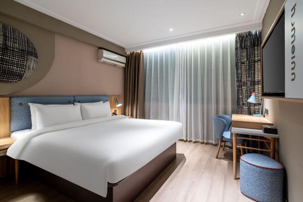 酒店位于福州市华林路与六一路交汇之处;步行至火车站、汽车北站约10分钟,步行至地铁口约5分钟,乘坐地铁直达福州三坊七巷、东街口商业街约5分钟,20余路公交车可到达鼓山(地铁需转2号线)、三坊七巷、开元寺等旅游景点;周围交通便捷,酒店林立,餐饮、娱乐集中,滨海快线机场半小时速达福州火车站,大巴每小时整点发车直接上高速直达机场,酒店周边餐饮、娱乐、银行、超市等生活配套服务一应俱全,交通便捷。酒店秉承的特色:“三大统一性”即“统一的建筑风格;统一的服务标准;统一的硬件设施”。酒店内外均由名家设计,风格简约别致,设施齐全舒适,展现给您的是一个“干净、温馨”的住宿环境,是商务客人和旅游客人理想的下榻之处。
