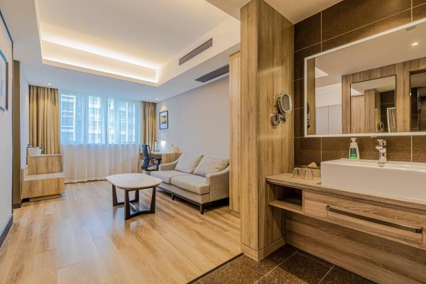济南奥体中心亚朵酒店位于济南市交通要道经十东路6199号(草山岭商业楼B座),其位置处于济南高新开发区的核心位置,东至邢村立交桥,可由此直接进入京福高速;西临济南奥林匹克体育中心、济南市人民政府(龙奥大厦)山东省博物馆以及省立医院东院;南靠汉峪金谷金融CBD商业区;北临齐鲁软件园、济南国际会展中心,附近有大型购物广场:银座商城,万达购物广场及丁豪广场交通便利,环境优美,是济南重要商业核心。好口碑来自好服务,好体验源自好品质。
