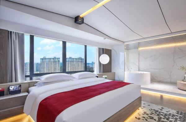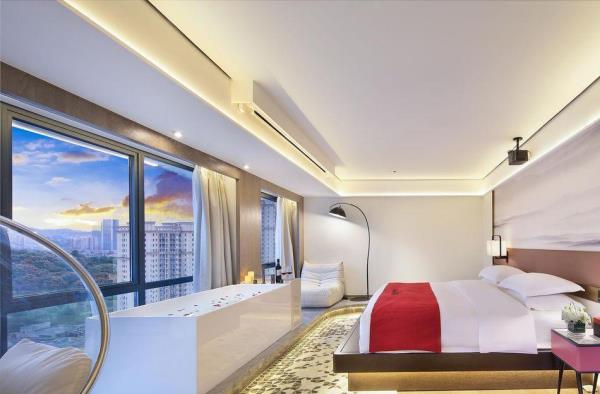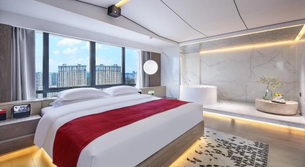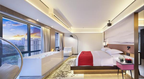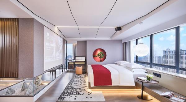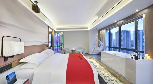 酒店位于宜昌市伍家区城东大道与中南路交汇口处兴发广场C座,以新中式禅意静心之所为定位,为宾客打造中式禅意生活方式酒店。酒店的设计涵盖了兰堂、雅居、汉服、文房、茶肆、正念,中式生活空间让宾客体验到生活之中的艺术之美。 “做美好的生活方式酒店”是我们的核心理念,体现在属地人文+宿享智能+舒心服务的3S运营模式,打造了以文化既视感、智能科技感、服务体验感三感合一的生活空间,每一处细节都为宾客传递美化、精致、自在的生活方式。【地理位置】 酒店坐拥中南路兴发广场核心商圈,毗邻环球港、长江广场、新华广场。一站式体验各类吃喝玩乐购,让您尽享便捷与繁华。【交通便利】 酒店交通便利,临火车东站车程10分钟左右;周边还有城东公园、东辰公园、妇幼保健院,交通十分便利。【畅快游玩】 酒店周边旅游资源丰富,距离交运长江夜游乘车14分钟,距离5A级景区三峡大坝车程50分钟,5A级景区三峡人家车程50分钟,5A级景区清江画廊车程60分钟,5A级三峡大瀑布车程49分钟,4A级景区车溪45分钟,让您轻松畅游宜昌。【配套丰富】 酒店周边配套设施齐全,永辉超市酒店电梯可直达;距离沃尔玛步行5分钟;满足您的日常购物需求。 【琳琅美食】 地下负一层美食城电梯可直达,中南夜市步行5分钟,兴发广场、环球港、长江广场、新华广场内连锁餐饮门店步行可直达,CBD小吃街车程15分钟,让您尽享宜昌本土特色美食。【服务人群】 酒店设施齐全,满足商务、情侣、亲子、闺蜜、旅游、出行等全场景社交旅居个性化入住需求。客房全屋智能客控,解放双手,拥有影视房、亲子房、大床、双床、观景套房等多种房型,满足不同客群和场景住宿需求。【配套服务】 酒店提供自助早餐厅、自助洗烘一体洗衣房、24小时健身房、汉服打卡、鲜花插花、书法拓印等配套服务,让您远离喧嚣、独享逸静时光,尽享高雅新中式之旅。 期待您的光临,与我们共同体验一个有温度的自在旅途空间。