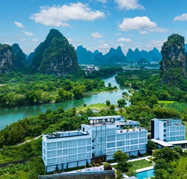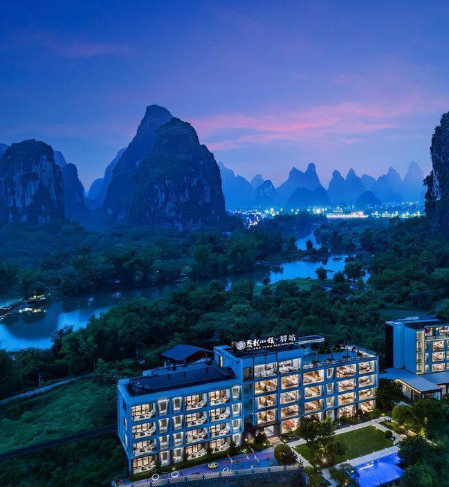 酒店位于十里画廊、遇龙河双景区内,是一处将聚龙人文理念与本土风情相结合,凝聚地域与自然之美,构建了诗意栖居的理想之地。近距离便能看到喀斯特地貌的风光之美,推门就是遇龙河,开窗尽享田园风光,让人不禁憧憬这桃源般生活。这里远离了城市的喧嚣,真实地呈现诗和远方、岁月静好的模样。阳朔人文的魅力与山水的诗意在此完美融合,处处体现着纯真与淳朴的自然之美。汇集住宿、餐厅、泳池、庭院、清吧、cafe、书屋、停车场、24h贴心管家服务于一体,在这里度假足不出户,即可体验不一样的隐奢生活。
