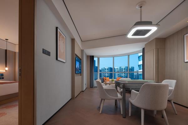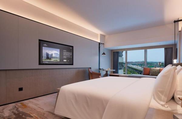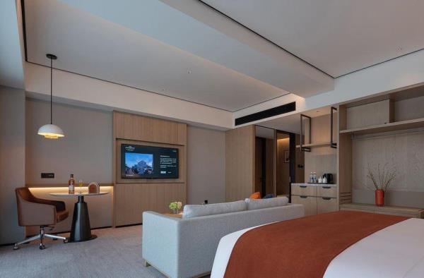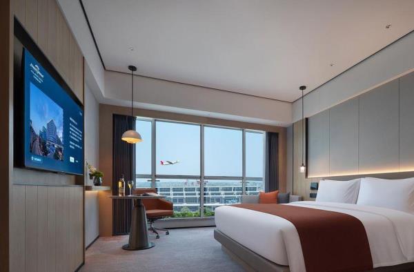 长沙机场豪生酒店,是长沙自贸临空区的国际高星级标准建立的酒店,坐落于湘域国际广场。距离机场T1&T2航站楼、磁悬浮仅三分钟车程,临近地铁6号线木马塅站3号出口。酒店附近有誉湘荟东方美学中餐厅、拾贰生宵烧烤大排档、航空影城、长沙百联奥特莱斯、长沙航空科技体验中心,可以实现旅客的吃住行游娱购,休闲娱乐与时尚文化一应俱全。酒店有舒适典雅的客房及套房,每间客房均配备智能语音系统,可语音操控房内所有电子设备;客房设有全智能自动化卫浴设施,卫浴间干湿分离;酒店更贴心配备了自助洗衣房。无论客人是抵达机场还是从机场出发,我们都将营造一个便捷、舒适的住宿环境,让客人在忙碌的行程中感受到宾至如归的温暖。酒店12楼有270°环绕全景落地窗的豪生咖啡厅,将近300㎡的空间可满足至少80人同时用餐的需求,拥窗而坐,日月同辉。24小时健身房,配备了先进的力量训练和有氧健身器材,让客人悦享身心的放松和自在。136㎡的会议室同样位于酒店12楼,配有高清LED屏及先进的音响设备,适用于70-100人的中小型会议及用餐。长沙机场豪生酒店于三湘之地优雅演绎湖湘特色与时尚元素的美妙融合,在您驻足期间,为您呈献“无论走到哪里,都将留恋这里”的旅居体验,邀您共赴难忘欣喜的星城之约!