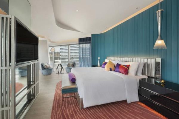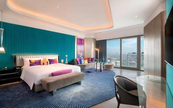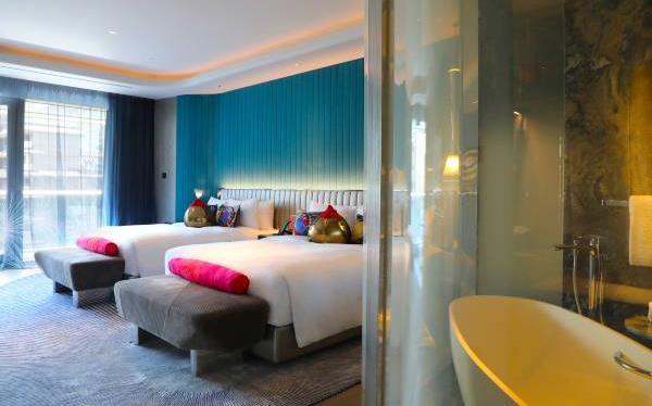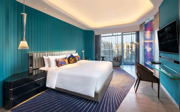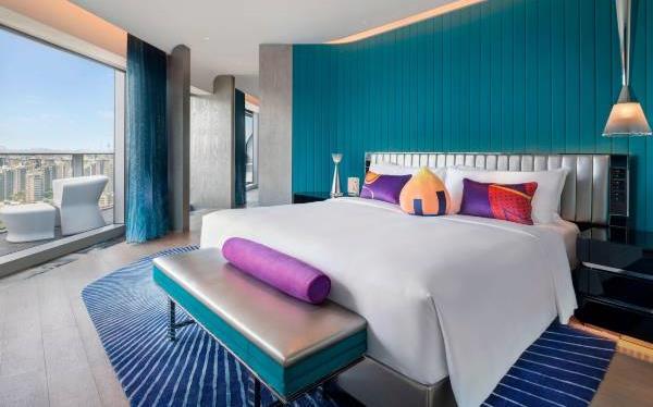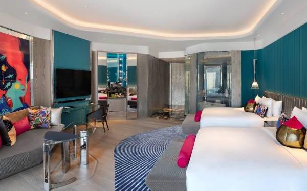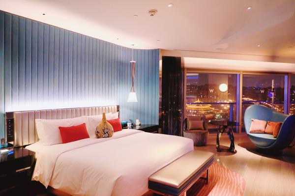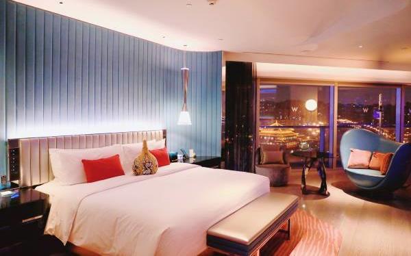 本酒店地处曲江新区,作为曲江景观的重要组成部分,以其后现代设计风格,与千年历史风貌强烈冲突,交相辉映,是对自大唐以来孕育兼容并蓄的华夏文明气派的致意。 酒店拥有诸多客房和套房,步入其中令人耳目一新。每间客房均配有景观阳台,置身于此,便可一览壮丽的曲江盛景。房内配有W酒店特色睡床,及备受喜爱的Momo洗浴用品、先进的娱乐设施等,为您打造潮奢的入住体验。酒店中所有细节都展现着自成一格的独特品味,阐述了古典雅致与现代趣味的惊喜碰撞。 如果热爱美食,在全味全日制餐厅和飨艳中餐厅,身怀绝技的厨师期待为您创造愉悦的美食之旅,享用美食佳肴之外,在WOOBAR酒吧享受充满惊喜的特色鸡尾酒,将成为您悠度惬意时光的理想之地。 玩乐过后,在AWAY®水疗中心宠爱自己,重塑身心平衡;或是WET室内恒温碧波泳池、FIT有型健身中心、尽情挥洒汗水,精力充沛地开始新的旅程。 西安W酒店距离大雁塔及大唐不夜城车程约10分钟;距离钟鼓楼及回民街车程约37分钟;距离西安新开业的地标性商场万象城/生命之树车程约15分钟。