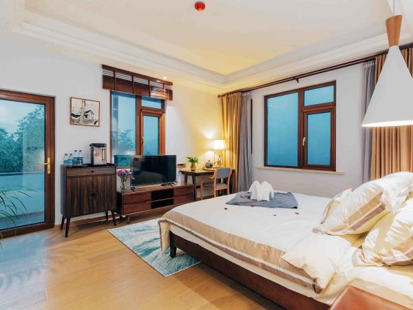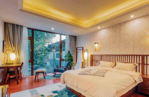 苏州巢园山居别院地处国家五A级风景区--苏州东山杨湾古村洞庭山坡,居此群山美景、湖光泽色尽收眼底。 园内百年古树,观鱼亭、望湖台、温泉池、紫竹园、瀑布穿石、水镜捞月、湾湾小溪流、泉水珍珠墙、明朝古井、咖啡吧、听风院以及各种奇山怪石,还有三十多种果树、上百种花卉布满全园,特别是玻璃月洞门制作巧夺天工,实属国内罕见;庭院独特的地理为来者增添灵气和好运;园内客房个个都能欣赏不同的景色,一房一式配套设施,智能门锁、冰箱、24小时热水供应、高端浴巾、毛巾、拖鞋、一次性洗漱用品,床品选用舒眠定制乳胶床垫护颈记忆乳胶枕,140支丝柔防螨全棉被单被套,手工定制蚕丝被芯,给您最优质的睡眠感受。高科技的地热系统,冬天给你带来春天般的温暖。同时,园中孔雀、锦鲤鱼更好地为庭院锦上添花,增添喜悦。携带宠物请选择预定本店“宠物友好客房”:紫竹园中园智能小屋/樱桃双院豪华套房。一楼开放式庭院,为汪量身定制,独门独院作为宠物房,非常适合带着萌宠度假。本园极合适开展团建包场活动,空间大活动项目多,包场政策为:房间数量9间(紫竹院樱桃苑三万顷渔舟晚半坡金洞庭秋为大床房各1间、桔子红双床房为1间、山景阁木屋别墅为2间大床房),卡拉OK、棋牌室免费服务时间为晚上6点~晚上10点,超时收取费用。
