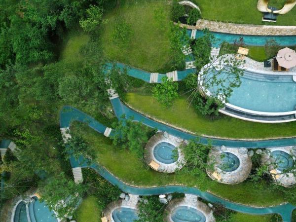 酒店坐落于蓥华山风景区的入口处,龙门山一号公路起点,地理位置优越,交通便利。距离什邡高铁站约30分钟车程。酒店共有精心设计的客房与合院多间,东方美学融入简约空间,古典与现代的结合,客房均设有宽敞露台,山景与建筑融为一体,悠然入画,伴山水诗意灵感入梦。中餐厅“豪生阁”& 全日餐厅“豪生咖啡厅”提供精致多样的餐饮服务,为宾客带来别出心裁的味蕾体验。“古蜀源”温泉中心设有16 个室内外蜀汤泡池,提供多种类型的温泉体验,尽享山水度假的自在闲适。会议会议中心设有大宴会厅及多功能厅,满足多种规格的会议和宴会需求,专业的会务团队为您的会议及宴会提供高品质的贴心服务。