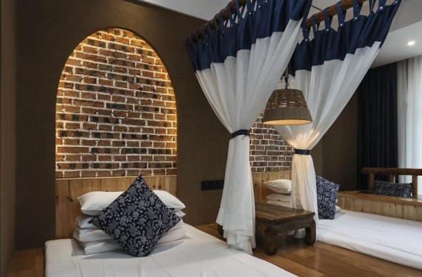 宜川瀑布知青文苑酒店位于壶口镇。酒店是延安市休闲农业旅游产业开发示范工程,是以知青文化为主导按照高星级标准建造的度假酒店,由延安知青文化发展有限公司投资兴建,集住宿、餐饮、旅游、会议、采摘、教育培训为一体的知青文化精品酒店,酒店拥有各类客房,知青小吃城2200平米,800平米本土特产中心一个,1000平米黄河九曲阵一座供游客免费娱乐,配套知青自摘有机果园20亩,力求打造陕北以知青文化主题为特色的度假酒店。