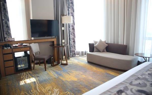 酒店座落于吉林素有“长白山门户”之称山水魅力之城市——梅河口市,是一家豪华商务休闲型酒店。饭店由吉林省建设集团有限公司投资兴建并全权委托“首旅建国酒店管理有限公司”全面管理。饭店拥有各类客房,设有中餐、全日餐厅、宴会厅、行政酒郎、棋牌室、健身房,为来店客人提供周到的服务;梅河口江诚建国饭店主体楼高22层,建筑面积约45000平方米,是集住宿、餐饮、会议、休闲娱乐为一体的综合性饭店;饭店秉承高档不失淡雅,奢华不失时尚的主体建筑风格,既同时融入了时尚与前卫,又兼具功能性与实用性于一体,是大型商务会议、婚宴、团体接待、年底聚餐、展会、新闻发布会等理想之所。