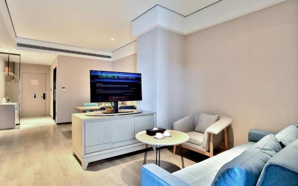 格雷斯精选酒店(苏州工业园区店)位于中新领袖天地,地处工业园区胜浦路,隶属于保税区工业园区高端制造与国际贸易区,紧临沪宁高速公路园区出入口约3分钟,距离中国海关出口加工区车程约5分钟,毗邻时尚舞台国际品牌城步行约8分钟,紧依阳澄湖和华谊电影世界,靠近园区城际高铁,周边有购物中心永旺,奕欧莱,各款美食应有尽有,吃喝玩乐享您所有想。一元酒管旗下,现拥有金石国际大酒店、格雷斯精选酒店、金石商务酒店、金石公寓酒店四大品牌,格雷斯精选酒店的轻奢设计风格彰显睿智沉稳,不失温暖与活力。深谙健康之道,从均衡膳食、运动健身到精神释放。优质服务、便捷效率追求品质的商旅人群。酒店所有客房均采用优质床品、配备全套草本精华洗浴用品、高速WIFI覆盖,酒店1楼配有餐厅营养自助早餐、大厅开放式图书馆,多种书刊供您选择,茶吧商务休闲区进口现磨咖啡让您感受慢时光。健身房、洗衣房,可容纳60-200人大小会议室;此外酒店还提供暖心暖胃夜驿服务,为深夜到店的您带来别样的温暖。用心温暖旅程,我们一直在路上。