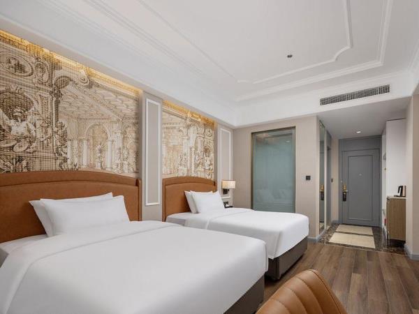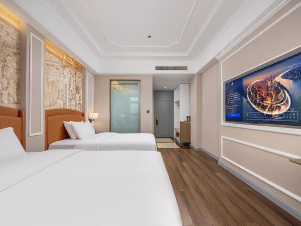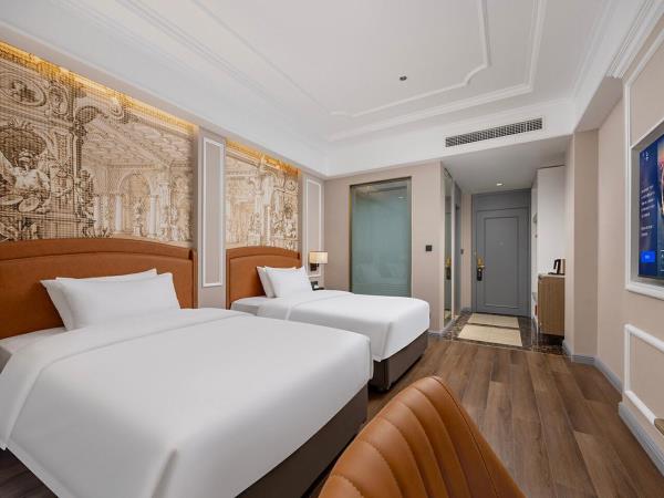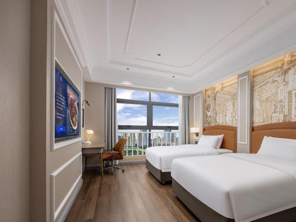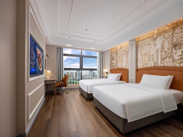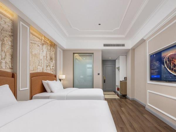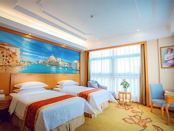 酒店位于柏杨西路新华广场,乘车约6分钟即可到达高铁站;酒店所处位置的新华广场配套设施齐全;美年大健康体检中心、健身俱乐部、中医馆、KTV等行业知名品牌坐落于此。酒店集客房、餐饮、会议、娱乐、休闲于一体,由名师设计,酒店门楼、大堂整体装修风格引入欧式精巧建筑,格调高雅,温馨豪华,尽显欧陆式高贵典雅风格,为您创造舒适高雅的入住体验。淋浴设施、床上用品,维也纳定制的愉梦之床,为您提供超值、艺术、环保、健康、安全、助眠、便捷的360度全方位尊贵消费体验。酒店早餐是中式自助早餐,健康、营养、丰富,为您开启元气满满的一天。酒店新增配置免费按摩椅的健康房,100寸投影屏幕的影音房,适合商务出差、旅游观光、探亲访友、休闲度假入住,期待您的光临!