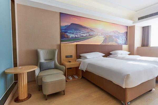 酒店为成维也纳5.0版本,属于锦江旗下品牌,位于鹰潭市城西鹰西大道国际眼镜城,地处鹰西大道主干道旁,紧靠余信贵立交快速道,距沪昆G60,济广G35高速互通车程约5分钟,交通便利;距鹰潭北站驾车15分钟,离方特驾车8分钟,距离龙虎山驾车30分钟,酒店毗邻信江,打造鹰潭全江景豪华商务度假型酒店。酒店主楼鹰潭国际眼镜城君融国际双子楼是鹰潭市标志性建筑,以欧陆式风情,巴洛克式设计风格商务度假型酒店,房间布置温馨典雅,设有愉梦之床、百兆光纤、极速wifi、3秒速热时尚卫浴系统等,为您提供超值、艺术、环保、健康、安全、便捷的全方位尊贵消费体验,让您感受到“绅士般品位,淑女般亲切”,锦江集团全国12938余家分店欢迎您的快乐入住。